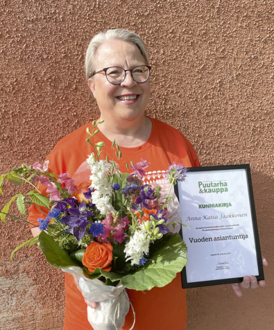 Puutarha&kauppa-lehden Vuoden asiantuntija 2023 on Luonnonvarakeskuksen yliaktuaari Anna-Kaisa Jaakkonen. Tunnustus julkistettiin ohjelmalavalla toisena näyttelypäivänä. Jaakkosella on pitkä ja monipuolinen suhde puutarha-alan ammattilehteen: hän on ollut yli 20 vuoden aikana sen toimittajana, kolumnistina ja asiantuntijakirjoittajana. Lisäksi nykyisessä työssään puutarhatilastojen parissa hän on lukemattomat kerrat tuottanut tietoa toimituksen käyttöön ja toimittajien juttujen kautta lehden lukijoille. Juttuja on kertynyt satakunta. Jaakkonen on lehdentekijöiden luotettava yhteistyökumppani, joka pystyy nopeallakin aikataululla porautumaan perusteellisesti käsillä olevaan aiheeseen. Puheenvuorossaan Jaakkonen muisteli aikaansa toimittajana: se opetti ottamaan yhteyttä alan ammattilaisiin ja kysymään heiltä. Nykypäivän muistutuksena hän huomautti, että viljelijäkysely on tulossa jälleen marraskuussa. Siihen vastaaminen on nyt tavallista juhlavampaa, sillä ensi vuonna kansainvälisestikin poikkeuksellisen kattavat Puutarhatilastot täyttävät jo 40 vuotta.