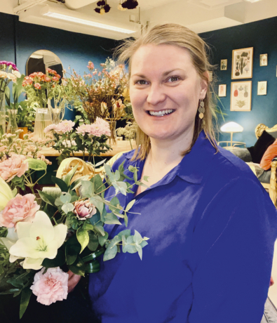 Sofia Palmroth järjestää 55 neliön kukkakaupassaan myös kursseja, joille mahtuu kymmenen osallistujaa kerrallaan.