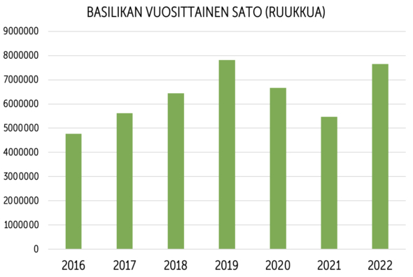 Basilika kuuluu jo oleellisena osana lautaselle meillä Suomessakin. Tuttuja käyttökohteita suomalaisille ovat vaikkapa viime vuosien suosikki uunifetapasta, italialaisesta keittiöstä lainatut margherita-pitsa ja itsetehty pesto sekä thaimaalaisen keittiön curryt. Ruokakulttuurin muutos ei käy hetkessä, mutta hittireseptien vanavedessä, matkustelun myötä ja heviosaston hyllymetrien kasvaessa monipuolinen yrttien käyttö iskostuu kuluttajien mieleen yleisemminkin.