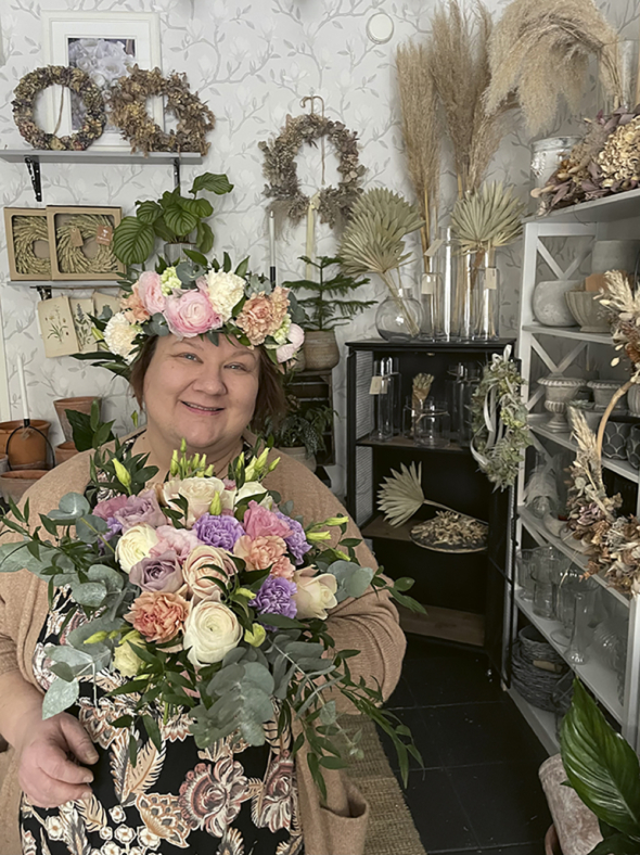 Henrietta Nyman-Lindin mielestä parasta omassa kukkakaupassa on, että saa tehdä kaiken kukkasidonnan itse. Oma kädenjälki toki aina näkyy, mutta tärkeintä on, että asiakas päättää mitä tehdään, ja Nyman-Lind toteuttaa asiakkaan toiveen ja visiot parhaansa mukaan.