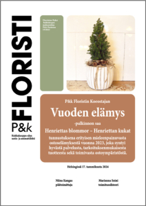 Vuoden elämys -palkintoon vaaditaan tarkoituksenmukainen tuote, hyvä asiakaspalvelu ja elämyksellinen ostoympäristö. Nämä kaikki olivat kohdillaan jutussa Nimipäiväkimppu Timolle/Vau vauhdikas! P&k Floristissa 8/2025.