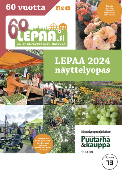 Tule Lepaalle puutarha- kiinteistönhoidon- ja viheralan ammatinäyttelyyn 15.–17. elokuuta! Suunnittele päiväsi Lepaalla P&k-lehden virallisen näyttelyoppaan avulla.