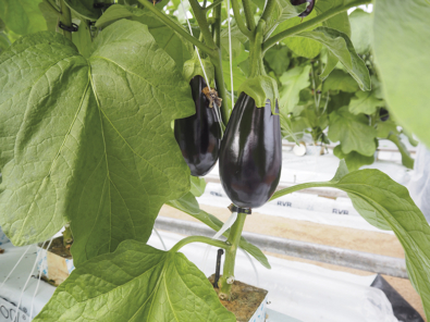 Yrityksessä viljellään munakoisoa nyt toista vuotta. Lajike vaihtui pallomaisesta Lemmystä ­enemmän suippomaiseen Tracyyn, joka on kuvassa.