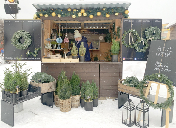 Joulukauppa täyttää nyt yrittäjän arjen. Menossa on kolmas vuosi, kun Scillasgarden osallistuu Porvoon joulutapahtumaan. Joulupolku myyntikojuineen avautui joulukuun alussa ja maanantain ja tiistain kiinnioloa lukuun ottamatta kestää 22. joulukuuta asti.