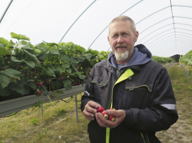 Mansikalla kasvutunneleissa on Rumban ohella aikaiseen sadontuotantoon Clery-lajiketta.