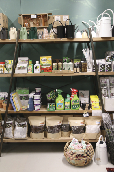 • Viherkasvien lisäksi myynnissä oheistuotteita, kuten itse tehtyä kasvualustaa, lannoitteita ja kasvinsuojeluaineita. Myös kasvien istutus- ja huoltopalvelu sekä verkkokauppa.